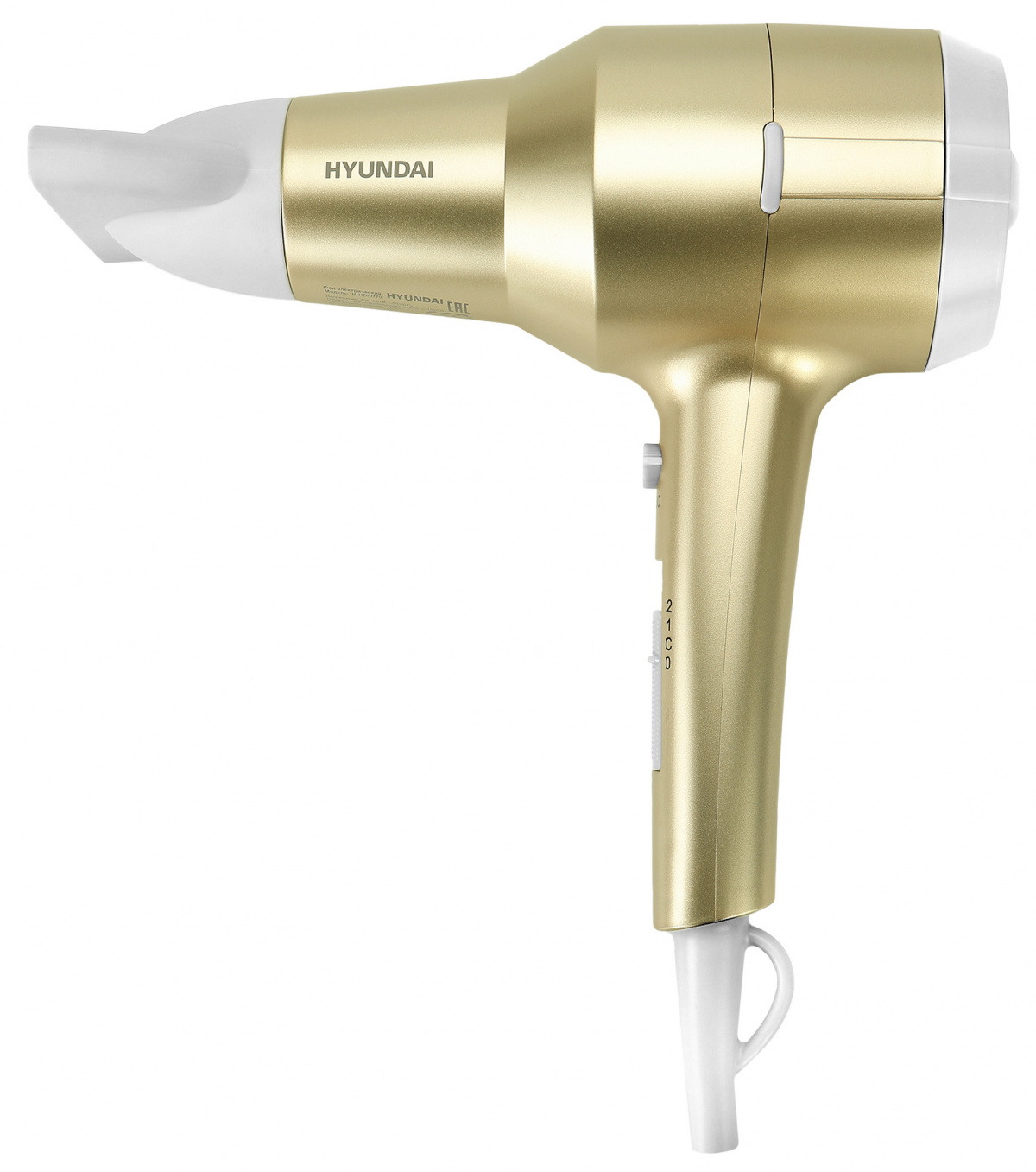 Модель: H-HDI0770. Вес товара: 0.472. Бренд: HYUNDAI. PartNumber/Артикул Производителя: H-HDI0770. Глубина товара: 85. Мощность: 1800. Ионизация: ДА. Концентратор: ДА. Съемная защитная решетка: ДА. Петля для подвешивания: ДА. Цвет: шампань. Длина сетевого шнура: 1.8. Дополнительный цвет: шампань. Дорожный фен: ДА. Тип мотора: DC. Форма: пистолет. Длина упаковки (ед): 0.36. Ширина упаковки (ед): 0.17. Высота упаковки (ед): 0.07. Габариты упаковки (ед) ДхШхВ: 0.36x0.17x0.07. Вес упаковки (ед): 0.613. Объем упаковки (ед): 0.004284. Ширина товара: 225. Высота товара: 267. EANCode: 14630114804282.