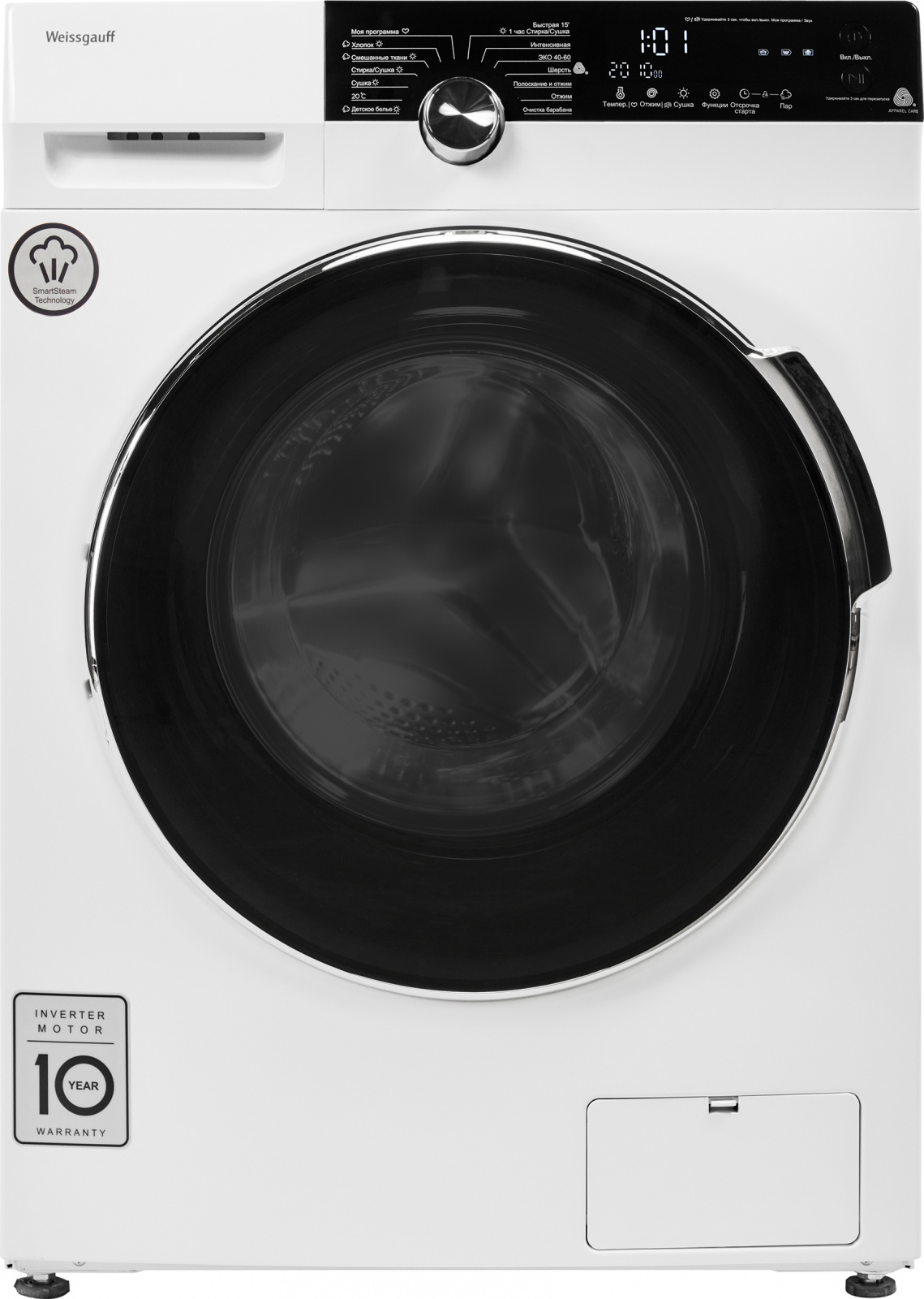Модель: WMD 4748 DC Inverter Steam. Направление открывания люка: влево. Регулируемая скорость отжима: 1400/1200/1000/800/600 об/мин. Уровень шума при стирке: 57. Уровень шума при отжиме: 79. Потребляемая мощность: 1900. Расход воды: 70. Количество программ: 16. Сенсорная панель управления: ДА. Тип защиты от протечек: AquaStop. Блокировка от случайного нажатия: ДА. Цвет люка: черный. Максимальное время отсрочки старта: 24. Регулируемые ножки: ДА. Вес: 65. Бренд: WEISSGAUFF. PartNumber/Артикул Производителя: 425238. Глубина: 47.5. Тип загрузки: фронтальная. Максимальная загрузка: 8. Максимальная скорость отжима: 1400. Диаметр загрузочного люка: 33. Тип управления: электронное. Класс стирки: A. Класс отжима: A. Класс энергопотребления: A. Сушка: ДА. Защита от протечек: ДА. Быстрая стирка: ДА. Предварительная стирка: ДА. Дополнительное полоскание: ДА. Программа для детской одежды: ДА. Отсрочка старта: ДА. Защита от детей: ДА. Цвет: белый. Максимальная загрузка на сушку: 6. Дисплей: ДА. Максимальная температура: 90. Обработка паром: ДА. Размеры: 59.5x85x47.5см. Размерность по глубине: средняя 40-45см. Длина упаковки (ед): 0.65. Ширина упаковки (ед): 0.561. Высота упаковки (ед): 0.89. Габариты упаковки (ед) ДхШхВ: 0.65x0.561x0.89. Вес упаковки (ед): 68. Объем упаковки (ед): 0.3245385. Инверторный мотор: ДА. Тип: Стиральная машина. Дозагрузка белья: ДА. Хлопок: ДА. Шерсть: ДА. Экономичная стирка ECO: ДА. Размерность по глубине (для фильтра Ситилинк): средняя. Ширина: 59.5. Высота: 85. EANCode: 4393720458531.