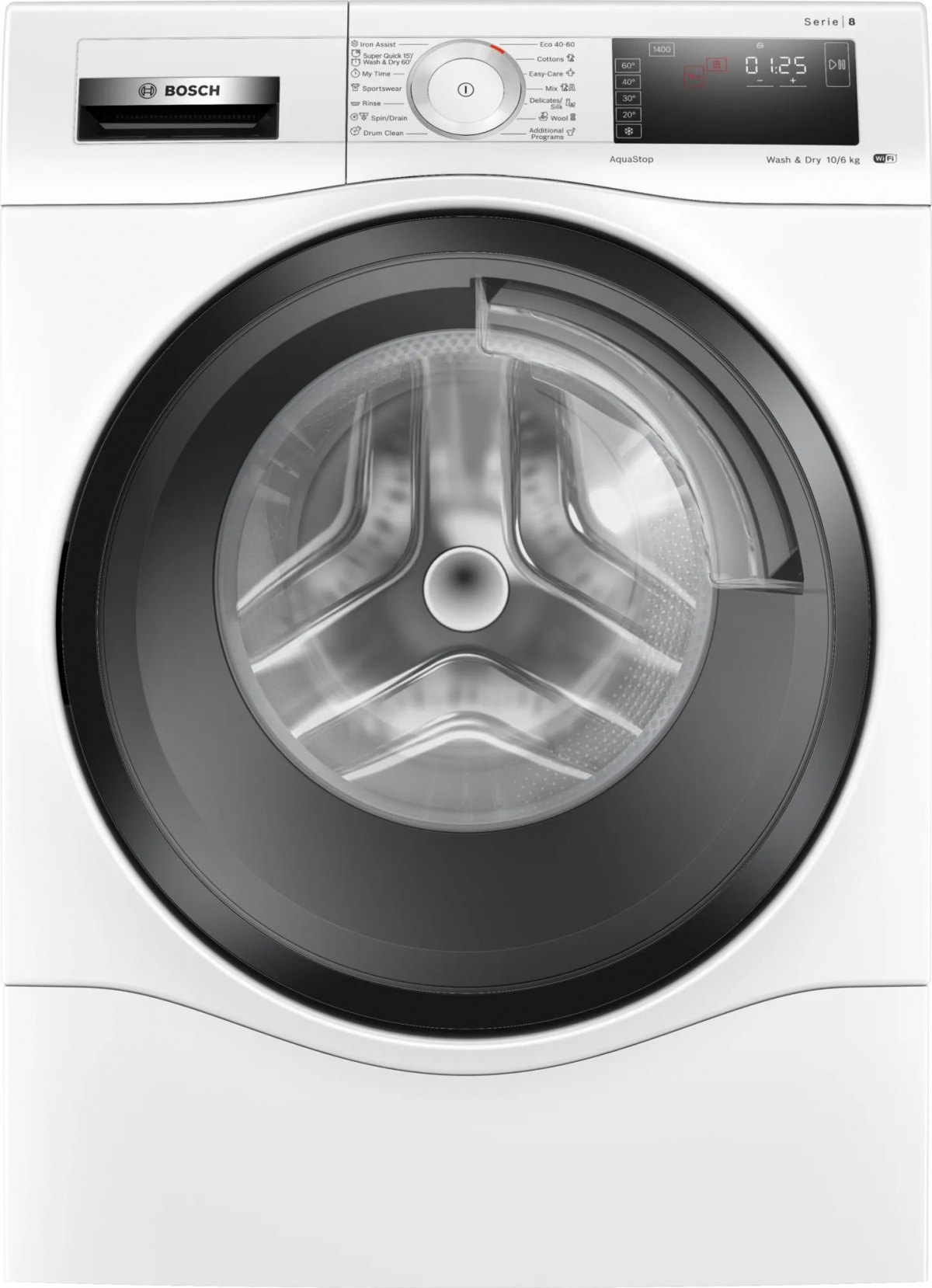 Модель: WDU8H543EU. Направление открывания люка: влево. Материал барабана: нержавеющая сталь. Уровень шума при отжиме: 70. Потребляемая мощность: 2300. Расход воды: 74. Количество программ: 14. Сенсорная панель управления: ДА. Тип защиты от протечек: AquaStop. Контроль уровня пены: ДА. Блокировка от случайного нажатия: ДА. Цвет люка: черный. Максимальное время отсрочки старта: 24. Регулируемые ножки: ДА. Вес товара: 82.1. Бренд: BOSCH. PartNumber/Артикул Производителя: WDU8H543EU. Глубина товара: 61.6. Серия: Serie 8. Тип загрузки: фронтальная. Максимальная загрузка: 10. Максимальная скорость отжима: 1400. Тип управления: электронное. Класс стирки: A. Класс отжима: B. Класс энергопотребления: A. Сушка: ДА. Защита от протечек: ДА. Предварительная стирка: ДА. Деликатная стирка: ДА. Отсрочка старта: ДА. Защита от детей: ДА. Цвет: белый. Максимальная загрузка на сушку: 6. Дисплей: ДА. Длина кабеля: 2.1. Управление со смартфона: ДА. Обработка паром: ДА. Размеры: 59.8x84.8x61.6см. Напряжение питания: 220-240 В. Размерность по глубине: полноразмерная 50-60см. Длина упаковки (ед): 0.665. Ширина упаковки (ед): 0.725. Высота упаковки (ед): 0.88. Габариты упаковки (ед) ДхШхВ: 0.665x0.725x0.88. Вес упаковки (ед): 75. Объем упаковки (ед): 0.42427. Контроль дисбаланса: ДА. Индикация времени до конца программы: ДА. Индикация этапов программы: ДА. Инверторный мотор: ДА. Тип: Стиральная машина. Глубина с учетом выступающих элементов: 65.4. Звуковой сигнал окончания стирки: ДА. Дозагрузка белья: ДА. Программа 'Спорт': ДА. Хлопок: ДА. Размерность по глубине (для фильтра Ситилинк): полноразмерная. Язык панели управления: английский. Ширина товара: 59.8. Высота: 84.8. EANCode: 4242005330928.