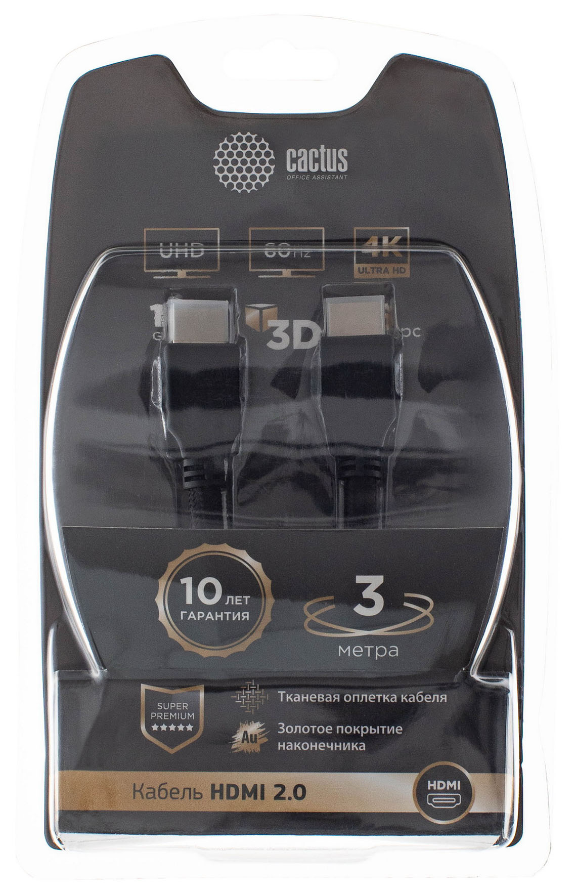 Модель: CS-HDMI.2-3. Бренд: CACTUS. PartNumber/Артикул Производителя: CS-HDMI.2-3. Длина упаковки (ед): 0.23. Ширина упаковки (ед): 0.14. Высота упаковки (ед): 0.06. Габариты упаковки (ед) ДхШхВ: 0.23x0.14x0.06. Вес упаковки (ед): 0.084. Объем упаковки (ед): 0.001932. Тип: Кабель. Функциональный тип: аудио-видео. Разъем №1: HDMI (m). Разъем №2: HDMI (m). Позолоченные контакты: ДА. Длина кабеля: 3. Цвет: черный. Версия разъема HDMI: ver 2.0. EANCode: 4670089308708.