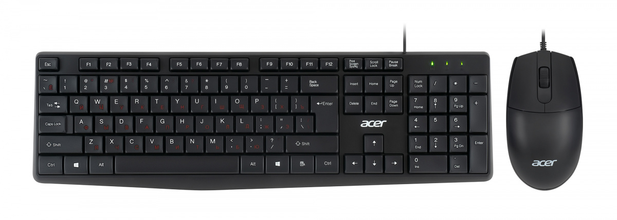 Модель: OMW141. Интерфейс подключения: USB. Тип соединения клавиатуры: проводной. Питание клавиатуры: по шине. Основной цвет клавиатуры: черный. Тип мыши: оптическая. Разрешение сенсора максимальное: 1000. Количество кнопок мыши: 2. Колесо прокрутки: ДА. Питание мыши: по шине. Основной цвет (мышь): черный. Бренд: ACER. PartNumber/Артикул Производителя: ZL.MCEEE.01M. Клавиатура с русскими буквами: ДА. Цвет клавиатуры: черный. Цвет мыши: черный. Размеры клавиатуры: 438x134.5x21.3мм. Размеры мыши: 114.5x61x37мм. Ссылка на сайт поставщика/вендора: https://extremecomp.ru/product/1639892/klaviatura-mysh-acer-omw141-klav-chernyi-mysh-chernyi-usb/. Длина упаковки (ед): 0.52. Ширина упаковки (ед): 0.05. Высота упаковки (ед): 0.16. Габариты упаковки (ед) ДхШхВ: 0.52x0.05x0.16. Вес упаковки (ед): 0.56. Объем упаковки (ед): 0.00416. Тип товара: Клавиатура + мышь. Комплект поставки: клавиатура, мышь. Длина провода клавиатуры: 1.5. Длина провода мыши: 1.5. Дизайн клавиш: квадратные. Цифровой блок: ДА. Цвет английских букв: белый. Цвет русских букв: красный. Поддержка разрешений: 1000. Дизайн мыши: для правой и левой руки. Цвет клавиш клавиатуры: черный. Длина мыши: 114.5. Ширина мыши: 61. Высота мыши: 37. Ширина клавиатуры: 134.5. Длина клавиатуры: 438. Толщина клавиатуры: 21.3. Цвет для названия: черный. EANCode: 4711121001048.