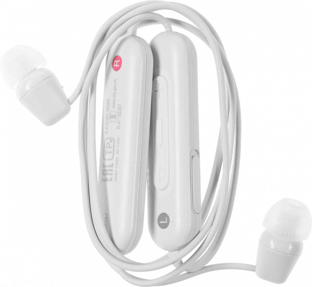 Модель: WI-C100. Бренд: SONY. PartNumber/Артикул Производителя: WI-C100. Тип соединения: беспроводные bluetooth. Нижняя граница диапазона: 20. Верхняя граница диапазона: 20. Подключение: Bluetooth. Версия Bluetooth: v.5.0. Поддержка профиля: A2DP, AVRCP, HFP, HSP. Радиус действия: 10. Тип элементов питания (наушники): Литий-ионный (встроенный). Зарядка от USB: ДА. Время работы: 25. Время зарядки наушников: 3. Стандартный цвет (для фильтра): белый. Тип наушников: Гарнитура. Тип для названия: Гарнитура. Кнопка ответа вызова: ДА. Тип, акустический: закрытые. Тип конструкции: вкладыши. Крепление микрофона: на проводе. Степень защиты: IPX4. Разъем питания зарядного чехла: USB Type-C. Тип звукоизлучателя: динамический. Количество драйверов: 1 динамический. Ссылка на сайт поставщика/вендора: https://www.sony.com/en-mu/electronics/in-ear-headphones/wi-c100. Материал амбушюров: силикон. Длина упаковки (ед): 0.155. Ширина упаковки (ед): 0.07. Высота упаковки (ед): 0.02. Габариты упаковки (ед) ДхШхВ: 0.155x0.07x0.02. Вес упаковки (ед): 0.112. Объем упаковки (ед): 0.000217. Крепление: шейный обод. Регулятор громкости: ДА. Тип регулятора громкости: на проводе. Переключатель треков: ДА. Диаметр головок излучателей: 9. Материал магнита: неодимовый. Запасные амбушюры в комплекте: ДА. Цвет: белый. Вес (без шнура): 20. EANCode: 4548736133907.
