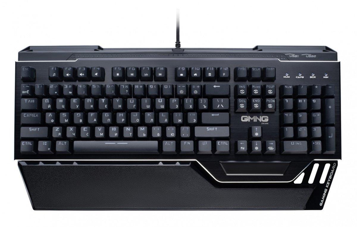 Модель: 985GK. Тип соединения клавиатуры: проводной. Бренд: GMNG. PartNumber/Артикул Производителя: 1677413. Категория Применения: B. Клавиатура с русскими буквами: ДА. Интерфейс: USB. Основной цвет: черный. Подставка для запястий: ДА. Мультимедийные дополнительные клавиши: ДА. Разъемы USB: ДА. Подсветка клавиш: ДА. Размеры клавиатуры: 448x45x232мм. Цвет: черный. Материал корпуса: алюминий/пластик. Вес (клавиатуры): 1.17. Для геймеров: ДА. Механическая: ДА. Количество клавиш: 104. Оригинальный аксессуар: ДА. Тип подсветки: RGB. Тип механических переключателей: Outemu Red. Ссылка на сайт поставщика/вендора: https://oklick.ru/catalog/item/21836. Длина упаковки (ед): 0.506. Ширина упаковки (ед): 0.285. Высота упаковки (ед): 0.067. Габариты упаковки (ед) ДхШхВ: 0.506x0.285x0.067. Вес упаковки (ед): 1.82. Объем упаковки (ед): 0.00966207. Тип: Клавиатура. Количество разъемов USB: 2xUSB2.0. Дизайн клавиш: квадратные. Защита от попадания жидкостей: ДА. Длина кабеля: 1.8. Цвет английских букв: прозрачный. Цвет русских букв: белый. Цвет клавиш: черный. Цвет корпуса клавиатуры: черный. Ширина клавиатуры: 448. Высота клавиатуры: 45. Глубина клавиатуры: 232. Цифровой блок: ДА. EANCode: 4630143114836.