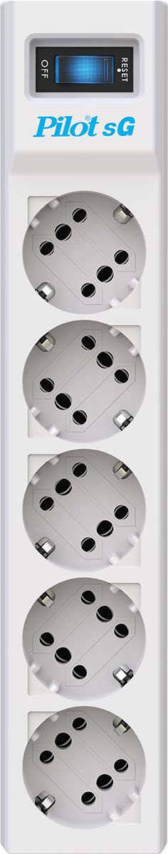 : Особенности: Розетка стандарта GP (Gadget parking) — розетка оригинальной конструкции, которая позволяет пользователю подключить одну круглую или две плоские вилки от аудио-видеотехники или от двух мобильных зарядных устройств (ЗУ).: Описание: Сетевой фильтр Pilot sG, создан на базе Pilot S, с оригинальной конструкцией розеток, формата Gadget Parking. Это позволяет подключить к изделию с 5-ю розетками до 10 различных потребителей.: