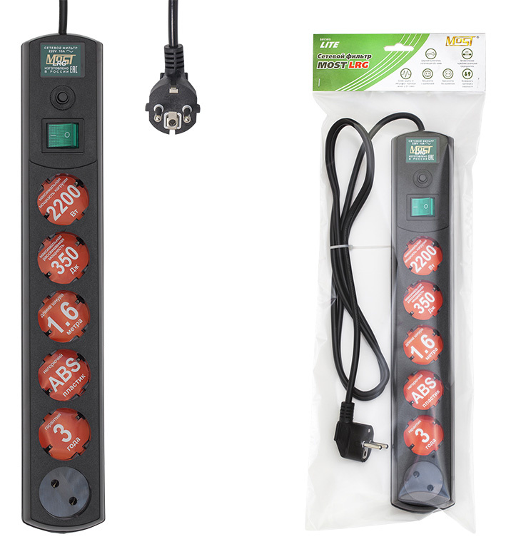 Модель: LRG. Бренд: MOST. Произведено в РФ: ДА. PartNumber/Артикул Производителя: LRG 6-1.6BK. Количество выходных розеток: 6. Выходные розетки с заземлением типа EURO: 5. Максимальная нагрузка: 2200. Тип упаковки: пакет ПЭ. Вес упаковки (ед): 0.527. Входная вилка, тип: EURO. Выходные розетки (RUS): 1. Длина шнура: 1.6. Цвет: черный. Максимальный ток нагрузки: 10. Тип: Сетевой фильтр. Номинальная мощность: 2200. Номинальное напряжение питающей сети: 220. Подавление импульсных помех: Да. Подавление высокочастотных помех: Да. Максимальная рассеиваемая энергия: 220. EANCode: 4607074522214.