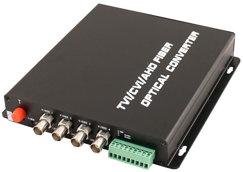 до 500м (многомодовое волокно);: Описание: Оптический приёмник 4 каналов видео HDCVI/HDTVI/AHD/CVBS и 1 двунаправленного канала управления (RS485/полудуплекс) по одномодовому оптоволокну до 20км.: