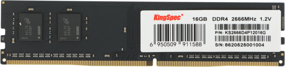 Модель: KS2666D4P12016G. Количество контактов: 288-pin. Показатель скорости: PC4-21300. Скорость (тест): 2666МГц. Напряжение (тест): 1.2В. Бренд: KINGSPEC. PartNumber/Артикул Производителя: KS2666D4P12016G. Количество рангов (Ranks): dual rank. Размер (модули памяти): 16384/2666. Длина упаковки (ед): 0.16. Ширина упаковки (ед): 0.07. Высота упаковки (ед): 0.015. Габариты упаковки (ед) ДхШхВ: 0.16x0.07x0.015. Вес упаковки (ед): 0.036. Объем упаковки (ед): 0.000168. Тип: Оперативная память. Суммарный объем памяти всего комплекта: 16. Объем одного модуля: 16. Пропускная способность: 21300. Тип памяти: DDR4. Объем: 16384. Частотная спецификация: 2666. Количество в упаковке: 1. Тип поставки: Ret. Форм-фактор: DIMM. Буферизация: unbuffered. EANCode: 6950509911588.