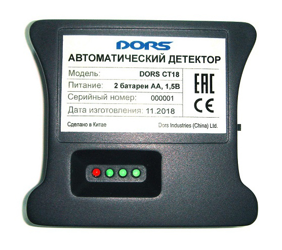 : Особенности: Детектор DORS CT18 имеет инновационную систему распознавания банкнот, включающую модуль антистокс-контроля.: Описание: DORS CT18 определяет подлинность российских рублей путем детекции антистокс-меток. Для проверки банкноты её необходимо вставить в щель детектора лицевой стороной (с нанесенными серийными номерами). Если банкнота имеет антистокс-метки (не является подозрительной)раздается звуковой сигнал и на корпус.: