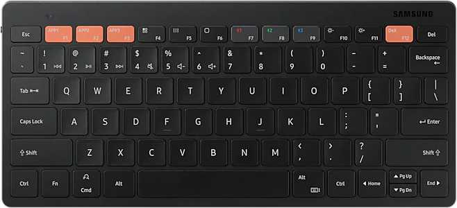 : Особенности: Универсальная Bluetooth-клавиатура, 3 специальных клавиши для переключения между устройствами, 3 'горячих' клавиши для запуска назначенных приложений, клавиша DeX для запуска режима DeX на устройствах Galaxy, компактный размер и лёгкий вес, быстрое подключение: Ссылка на сайт поставщика/вендора: https://www.samsung.com/ru/mobile-accessories/samsung-smart-keyboard-trio-500-black-samsung-smart-keyboard-trio-500-ej-b3400bbrgru/: Описание: Универсальная Bluetooth-клавиатура, 3 специальных клавиши для переключения между устройствами, 3 'горячих' клавиши для запуска назначенных приложений, клавиша DeX для запуска режима DeX на устройствах Galaxy, компактный размер и лёгкий вес, быстрое подключение: