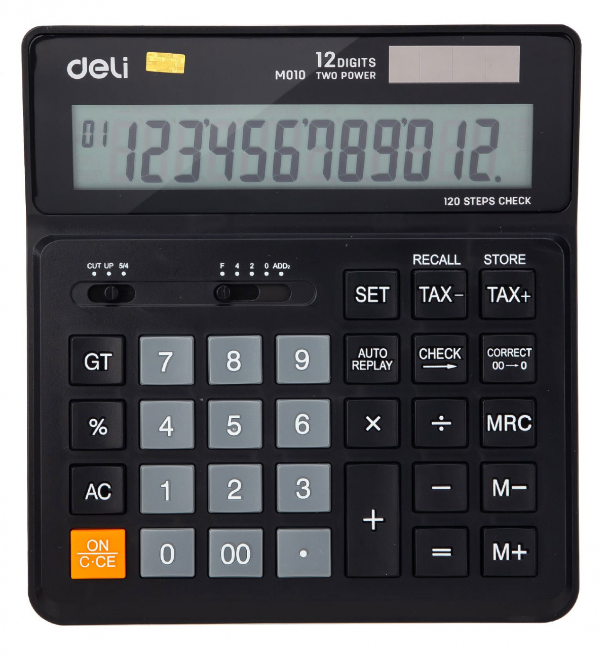Модель: EM01020. Бренд: DELI. PartNumber/Артикул Производителя: EM01020. Размеры: 160.4x150.2x33мм. Длина упаковки (ед): 0.16. Ширина упаковки (ед): 0.14. Высота упаковки (ед): 0.04. Габариты упаковки (ед) ДхШхВ: 0.16x0.14x0.04. Вес упаковки (ед): 0.26. Объем упаковки (ед): 0.000896. Вес: 242. Толщина: 33. Тип (для названия): Калькулятор. Тип: бухгалтерский. Количество строк дисплея: однострочный. Разрядность дисплея: 12-разрядный. Тип электропитания: комбинированное. Корректировка вводимого числа: ДА. Налог на доб. стоимость: ДА. Суммирование всех значений: ДА. Клавиша '00': ДА. Ширина: 160.4. Высота: 150.2. Тип дисплея: монохромный. Цвет: черный. EANCode: 6935205350695.