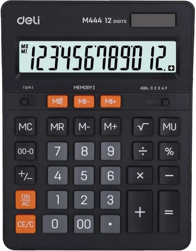 Модель: EM444. Бренд: DELI. PartNumber/Артикул Производителя: EM444. Категория Применения: КАЛЬКУЛЯТОР 8 РАЗР. Длина упаковки (ед): 0.21. Ширина упаковки (ед): 0.04. Высота упаковки (ед): 0.16. Габариты упаковки (ед) ДхШхВ: 0.21x0.04x0.16. Вес упаковки (ед): 0.326. Объем упаковки (ед): 0.001344. Тип (для названия): Калькулятор. Тип: настольный. Количество строк дисплея: 1. Разрядность дисплея: 12-разрядный. Тип электропитания: батарея. Кол-во элементов питания: 1. Тип элементов питания: LR44. Клавиша '00': ДА. Тип дисплея: монохромный. Цвет: темно-серый. EANCode: 6935205309402.