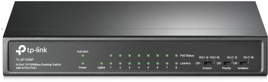 Модель: TL-SF1009P. Бренд: TP-LINK. PartNumber/Артикул Производителя: TL-SF1009P. Глубина: 98. Количество портов RJ-45: 9. Размеры: 171x27x98мм. Исполнение: внутреннее. Материал корпуса: металл. Ссылка на сайт поставщика/вендора: https://www.tp-link.com/ru/business-networking/poe-switch/tl-sf1009p/. Длина упаковки (ед): 0.28. Ширина упаковки (ед): 0.23. Высота упаковки (ед): 0.07. Габариты упаковки (ед) ДхШхВ: 0.28x0.23x0.07. Вес упаковки (ед): 1. Объем упаковки (ед): 0.004508. Базовая скорость передачи данных: 10/100 Мбит/с. Внутренняя пропускная способность: 1.8 Гбит/сек. Сетевые стандарты: IEEE 802.3af/at. Наличие PoE портов: ДА. Тип: неуправляемый. Установка: настольный. Порты 10/100BASE-TX: 9. Таблица MAC-адресов: 2. Ширина: 171. Высота: 27. Кол-во портов с поддержкой PoE+: 8. PoE бюджет: 65. EANCode: 6935364052966.