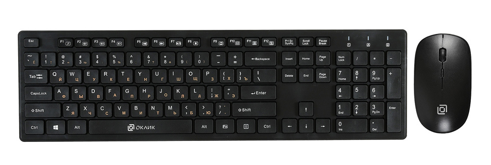 Модель: 240M. Интерфейс подключения: USB. Тип соединения клавиатуры: беспроводной. Клавиатура Slim-дизайна: ДА. Питание клавиатуры: 1хААА. Основной цвет клавиатуры: черный. Тип мыши: оптическая. Разрешение сенсора максимальное: 1600. Изменение сенсора кнопкой: ДА. Количество кнопок мыши: 3. Колесо прокрутки: ДА. Питание мыши: 1хAA. Основной цвет (мышь): черный. Бренд: OKLICK. PartNumber/Артикул Производителя: 1091253. Цвет клавиатуры: черный. Цвет мыши: черный. Размеры клавиатуры: 439x126x30мм. Размеры мыши: 113x69x34мм. Тип беспроводного соединения мыши: Радио. Ссылка на сайт поставщика/вендора: http://oklick.ru/catalog/item/3014. Длина упаковки (ед): 0.52. Ширина упаковки (ед): 0.14. Высота упаковки (ед): 0.04. Габариты упаковки (ед) ДхШхВ: 0.52x0.14x0.04. Вес упаковки (ед): 0.675. Объем упаковки (ед): 0.002912. Тип товара: Клавиатура + мышь. Радиус действия: 10. Мультимедийные дополнительные клавиши: ДА. Клавиши островного типа: ДА. Дизайн клавиш: квадратные. Цифровой блок: ДА. Цвет английских букв: белый. Цвет русских букв: розовый. Поддержка разрешений: 1000/1600. Дизайн мыши: для правой и левой руки. Цвет клавиш клавиатуры: черный. Длина мыши: 113. Ширина мыши: 69. Высота мыши: 34. Ширина клавиатуры: 126. Длина клавиатуры: 439. Толщина клавиатуры: 30. Цвет для названия: черный. EANCode: 4630043290449.
