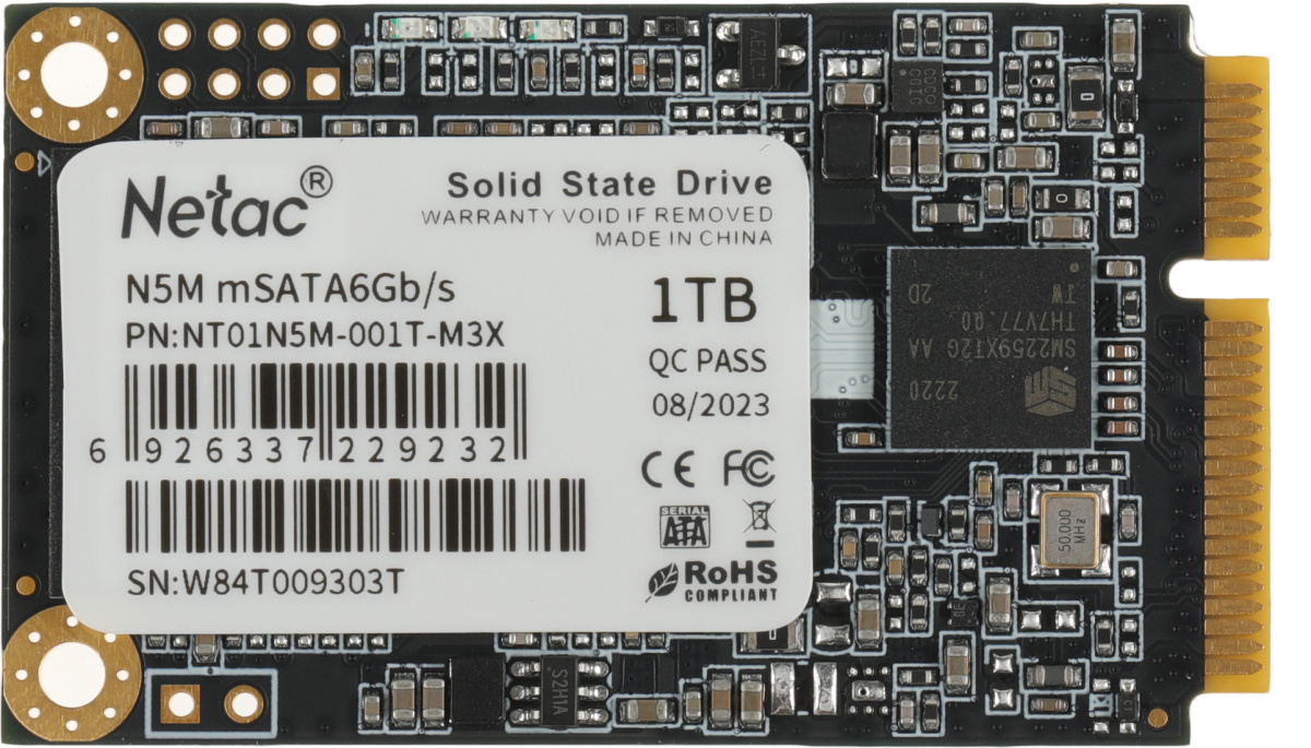 Модель: N5M. Время наработки на отказ: 1500000. Интерфейс: mSATA. Максимальная скорость записи: 520. Максимальная скорость чтения: 560. Объем накопителя: 1024. Потребляемая мощность: 3.3. Тип памяти NAND: 3D. Бренд: NETAC. PartNumber/Артикул Производителя: NT01N5M-001T-M3X. Тип жесткого диска: SSD. Форм-фактор: mSATA. Ресурс TBW: 560. Разъем: mSATA. Ссылка на сайт поставщика/вендора: https://www.netac.com/product/N5M-12.html. Вес упаковки (ед): 0.03. Ударостойкость при работе: 1500 G. Толщина: 4.85. EANCode: 6926337229232.