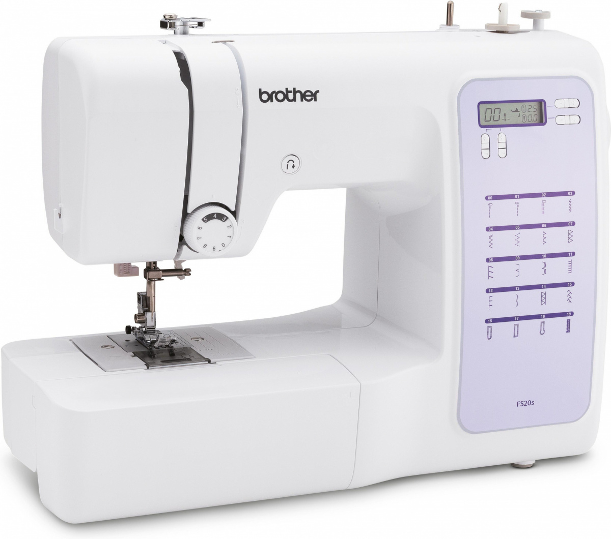 Модель: FS20S. Регулятор скорости шитья: ДА. Регулировка длины строчки: ДА. Регулировка ширины зигзага: ДА. Бренд: BROTHER. PartNumber/Артикул Производителя: FS20S. Тип: Швейная машина. Подтип: компьютеризированная. Количество строчек: 20. Дополнительный цвет/дизайн/рисунок: фиолетовый. Максимальная длина стежка: 5. Максимальная ширина стежка: 7. Челнок: ротационный горизонтальный. Выполнение петель: автоматическое. Шитье двойной иглой: ДА. Рукавная платформа: ДА. Реверс: ДА. Подсветка: ДА. Отсек для хранения принадлежностей: ДА. ЖК-дисплей: ДА. Цвет: белый. Длина упаковки (ед): 0.47. Ширина упаковки (ед): 0.225. Высота упаковки (ед): 0.37. Габариты упаковки (ед) ДхШхВ: 0.47x0.225x0.37. Вес упаковки (ед): 6.5. Объем упаковки (ед): 0.0391275. EANCode: 4977766809436.