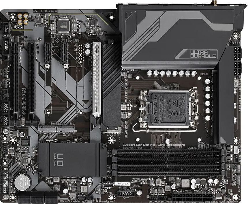 Модель: Z790 UD AX. Гнездо процессора: LGA 1700. Northbridge: Intel Z790. Частотная спецификация памяти: 4800. Максимальный объем оперативной памяти: 128. Слотов PCI-E x1: 2. Поддержка SATA RAID: ДА. WiFi в стандартной поставке: ДА. Звук: 8 каналов (7.1). Сетевой интерфейс: 2.5Gigabit. Форм-фактор: ATX. Разъемов M.2: 3. Бренд: GIGABYTE. PartNumber/Артикул Производителя: Z790 UD AX. Тип поставки: Ret. Поддержка SLI/CrossFire: CrossFire. Кол-во внешних USB 2.0: 4. Разъемов SATA3: 6. Кол-во внешних USB 3.0: 4. Поддерживаемые процессоры: совместимость уточняйте на сайте производителя. Поддерживаемые модули памяти: совместимость уточняйте на сайте производителя. Режим работы оперативной памяти: двухканальный. Поддержка RAID 0: ДА. Поддержка RAID 1: ДА. Поддержка RAID 5: ДА. Поддержка RAID 10: ДА. Разъем Display Port: ДА. Разъем HDMI: ДА. Питание материнской платы и процессора: 24+8+8 pin. Сетевой контроллер: Realtek. Аудио контроллер: Realtek. Bluetooth в стандартной поставке: ДА. Максимальное количество слотов памяти (для фильтра Ситилинк): 4. Кол-во внешних USB 3.1: 1. Поддержка NVMe: ДА. Поддержка RAID: ДА. Слотов PCI-E 4.0 x16: 2. Ссылка на сайт поставщика/вендора: https://www.gigabyte.com/Motherboard/Z790-UD-AX-rev-10/sp#sp. Слотов памяти DDR5: 4. Поддерживаемые диски и накопители: совместимость уточняйте на сайте производителя. Слотов PCI-E 5.0 x16: 1. Кол-во внешних USB 3.2 (Type-C): 1. Длина упаковки (ед): 0.34. Ширина упаковки (ед): 0.275. Высота упаковки (ед): 0.08. Габариты упаковки (ед) ДхШхВ: 0.34x0.275x0.08. Вес упаковки (ед): 1.25. Объем упаковки (ед): 0.00748. BIOS: AMI. Разъем для подключения ленты RGB: ДА. Режим работы SATA RAID: 0, 1, 5, 10. Тип системы охлаждения: пассивное. Разъем питания процессора: 8 pin + 8 pin. Разъем питания материнской платы: 24 pin. Тип: Материнская плата. Особенности и технологии BIOS: 1 микросхема флэш-памяти 256 Мбит