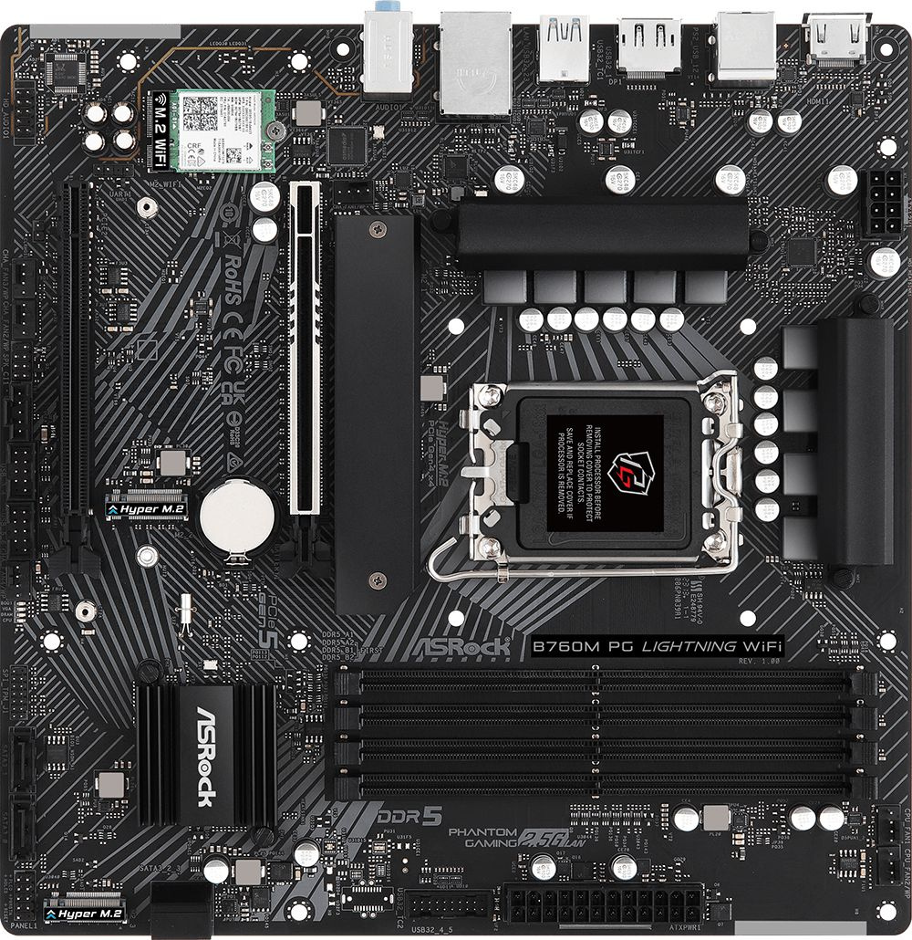 Модель: B760M PG LIGHTNING WIFI. Гнездо процессора: LGA 1700. Northbridge: Intel B760. Частотная спецификация памяти: 4800. Максимальный объем оперативной памяти: 192. Встроенный Wi-Fi: ДА. Звук: 8 каналов (7.1). Сетевой интерфейс (Ethernet RJ-45): 2.5Gigabit. Форм-фактор: mATX. Разъемов M.2: 2. Бренд: ASROCK. PartNumber/Артикул Производителя: B760M PG LIGHTNING WIFI. Тип поставки: Ret. Поддержка SLI/CrossFire: CrossFire. Кол-во внешних USB 2.0: 2. Кол-во внешних USB 3.0: 3. Поддерживаемые процессоры: совместимость уточняйте на сайте производителя. Поддержка частот оперативной памяти: до 7200+(OC) МГц. Поддерживаемые модули памяти: совместимость уточняйте на сайте производителя. Режим работы оперативной памяти: двухканальный. Поддержка RAID 0: ДА. Поддержка RAID 1: ДА. Поддержка RAID 5: ДА. Поддержка RAID 10: ДА. Разъем Display Port: ДА. Разъем HDMI: ДА. Сетевой контроллер: Dragon RTL8125BG. Аудио контроллер: Realtek ALC89. Встроенный Bluetooth: ДА. Максимальное количество слотов памяти (для фильтра Ситилинк): 4. Кол-во внешних USB 3.0 (Type-C): 1. Поддержка NVMe: ДА. Поддержка RAID: ДА. Для геймеров: ДА. Слотов PCI-E 4.0 x16: 1. Ссылка на сайт поставщика/вендора: https://pg.asrock.com/mb/Intel/B760M%20PG%20Lightning%20WiFi/index.asp#Specification. Слотов памяти DDR5: 4. Поддерживаемые диски и накопители: совместимость уточняйте на сайте производителя. Слотов PCI-E 5.0 x16: 1. Длина упаковки (ед): 0.28. Ширина упаковки (ед): 0.26. Высота упаковки (ед): 0.06. Габариты упаковки (ед) ДхШхВ: 0.28x0.26x0.06. Вес упаковки (ед): 1.21. Объем упаковки (ед): 0.004368. BIOS: AMI. Разъем для подключения ленты RGB: ДА. Режим работы SATA RAID: 0, 1, 5, 10. Тип системы охлаждения: пассивное. Разъем питания процессора: 8 pin. Разъем питания материнской платы: 24 pin. Тип: Материнская плата. Особенности и технологии BIOS: UEFI. Всего слотов PCI-E: 2. Разъем M.2 Key E: ДА. Разъем SATA: SATA 3. Количество разъемов SATA: 4. 4-Pin PWM коннекторы для вентиляторов: 6. Поддержка памяти XMP: ДА. M2 2280 с интерфейсом PCI-E 4.0 х2: 2. Тип поддерживаемой памяти: DIMM. Скорость работы слотов PCI-E x16 в многоканальном режиме: x16 в одноканальном, x16 + x4 в двухканальном. Разъем PS/2: 1 шт. (клавиатура или мышь). Разъемов Display Port: 1. Разъемов HDMI: 1. Возможность установить две видеокарты с трехслотовой системой охлаждения: ДА. Тип памяти: DDR5. EANCode: 4710483943522.