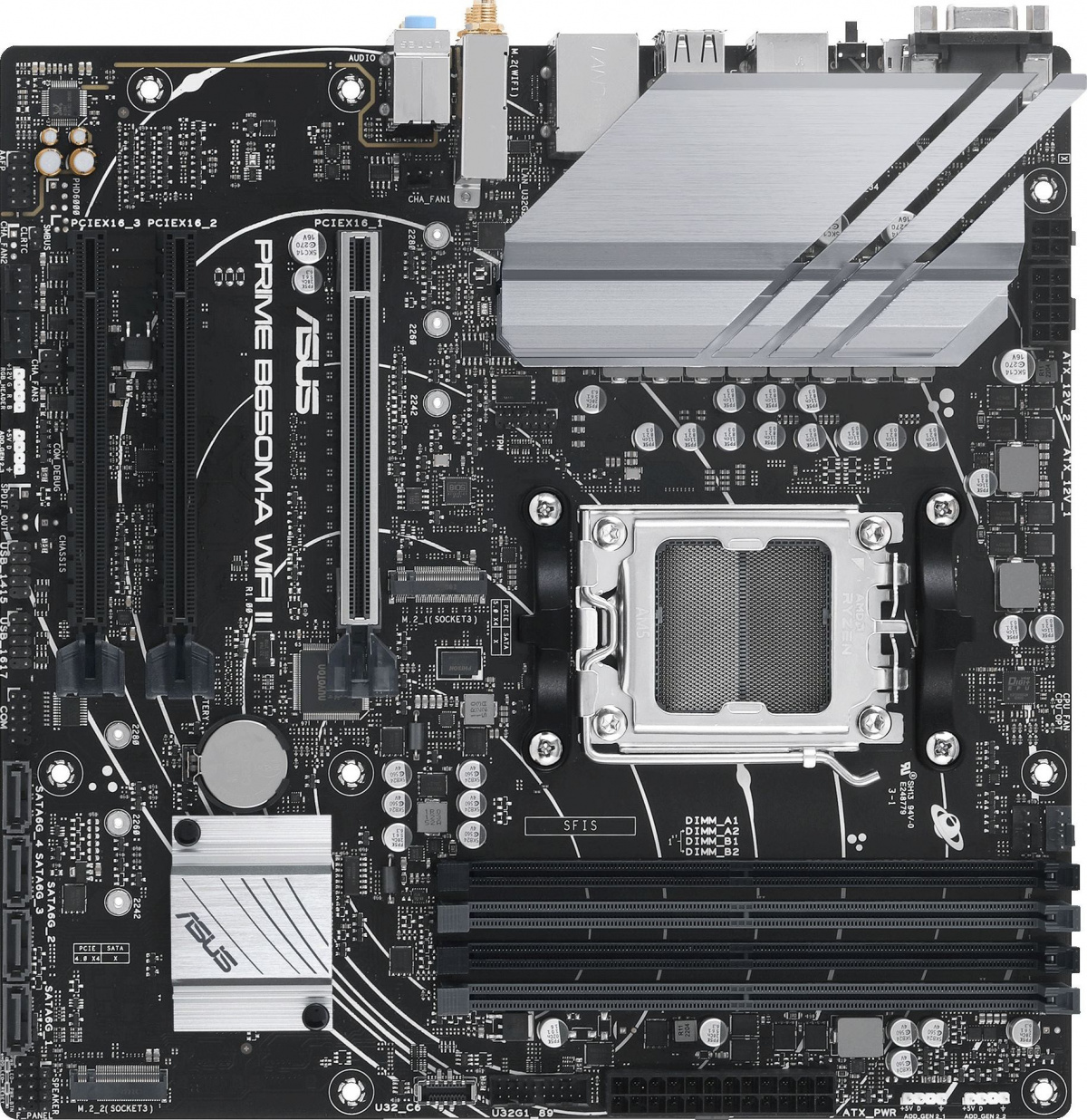Модель: PRIME B650M-A WIFI II. Гнездо процессора: SocketAM5. Northbridge: AMD B650. Частотная спецификация памяти: 5200. Максимальный объем оперативной памяти: 128. WiFi в стандартной поставке: ДА. Звук: 8 каналов (7.1). Сетевой интерфейс: 2.5Gigabit. Форм-фактор: mATX. Разъемов M.2: 2. Бренд: ASUS. PartNumber/Артикул Производителя: PRIME B650M-A WIFI II. Тип поставки: Ret. Особенности: UEFI. Кол-во внешних USB 2.0: 4. Разъемов SATA3: 4. Кол-во внешних USB 3.0: 2. Поддерживаемые процессоры: совместимость уточняйте на сайте производителя. Поддержка частот оперативной памяти: 6400+(OC) / 6200(OC) / 6000(OC) / 5800(OC) / 5600(OC) / 5400(OC) / 5200 / 5000 / 4800 МГц. Поддерживаемые модули памяти: совместимость уточняйте на сайте производителя. Режим работы оперативной памяти: двухканальный. Разъем Display Port: ДА. Разъем VGA: ДА. Разъем HDMI: ДА. Питание материнской платы и процессора: 24+8 pin. Сетевой контроллер: Realtek. Аудио контроллер: Realtek. Bluetooth в стандартной поставке: ДА. Максимальное количество слотов памяти (для фильтра Ситилинк): 4. Кол-во внешних USB 3.1: 2. Поддержка RAID: ДА. Слотов PCI-E 4.0 x16: 3. Ссылка на сайт поставщика/вендора: https://www.asus.com/motherboards-components/motherboards/prime/prime-b650m-a-wifi-ii/techspec/. Слотов памяти DDR5: 4. Поддерживаемые диски и накопители: совместимость уточняйте на сайте производителя. Длина упаковки (ед): 0.28. Ширина упаковки (ед): 0.28. Высота упаковки (ед): 0.07. Габариты упаковки (ед) ДхШхВ: 0.28x0.28x0.07. Вес упаковки (ед): 1.523. Объем упаковки (ед): 0.005488. BIOS: AMI. Разъем для подключения ленты RGB: ДА. Режим работы SATA RAID: 0, 1, 10. Тип системы охлаждения: пассивное. Разъем питания процессора: 8 pin + 4 pin. Разъем питания материнской платы: 24 pin. Тип: Материнская плата. Всего слотов PCI-E: 3. Разъем SATA: SATA 3. Количество разъемов SATA: 4. M2 2280 с интерфейсом PCI-E 5.0 х4: 1. M2 2280 с интерфейсом PCI-E 4.0 х4: 1. Тип поддерживаемой памяти: DIMM. Разъем PS/2: 1 шт. (клавиатура или мышь). Разъемов Display Port: 1. Разъемов D-Sub (VGA): 1. Разъемов HDMI: 1. Возможность установить две видеокарты с трехслотовой системой охлаждения: ДА. Тип памяти: DDR5. EANCode: 4711387034934.